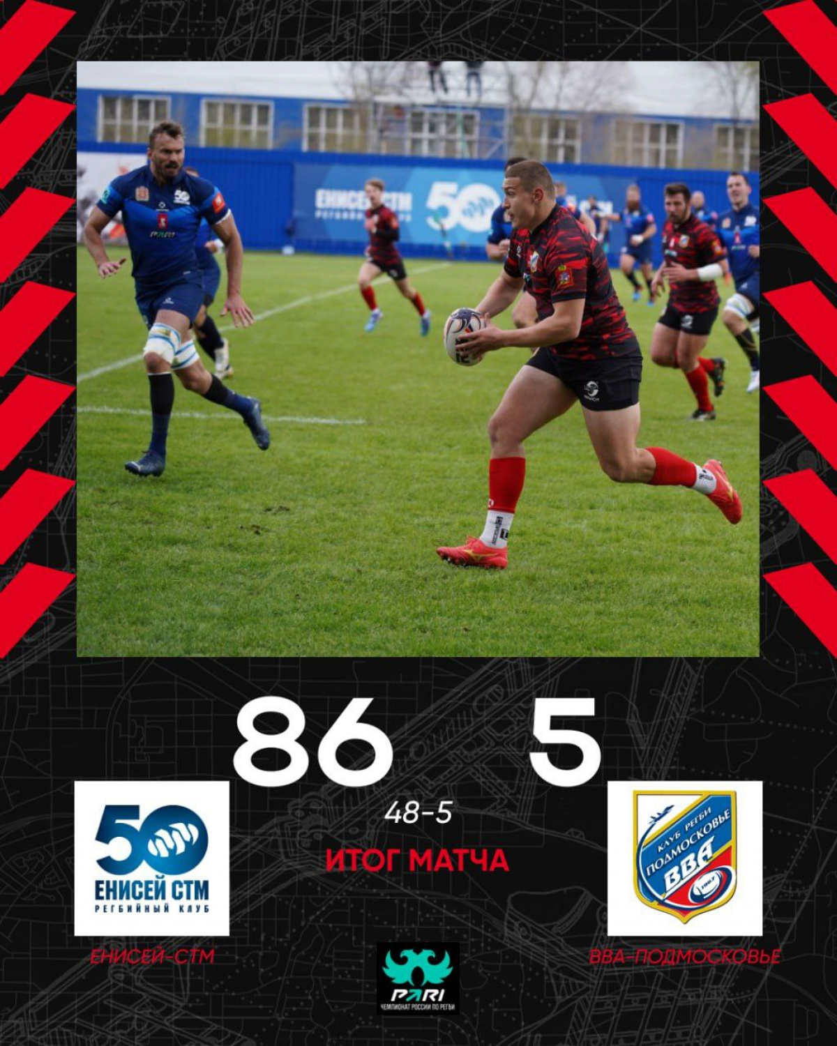 "Енисей-СТМ" доминировал с первых минут, а "военлётам" удалось лишь однажды поразить зачетную зону соперника. Итог — 86:5 в пользу красноярцев.