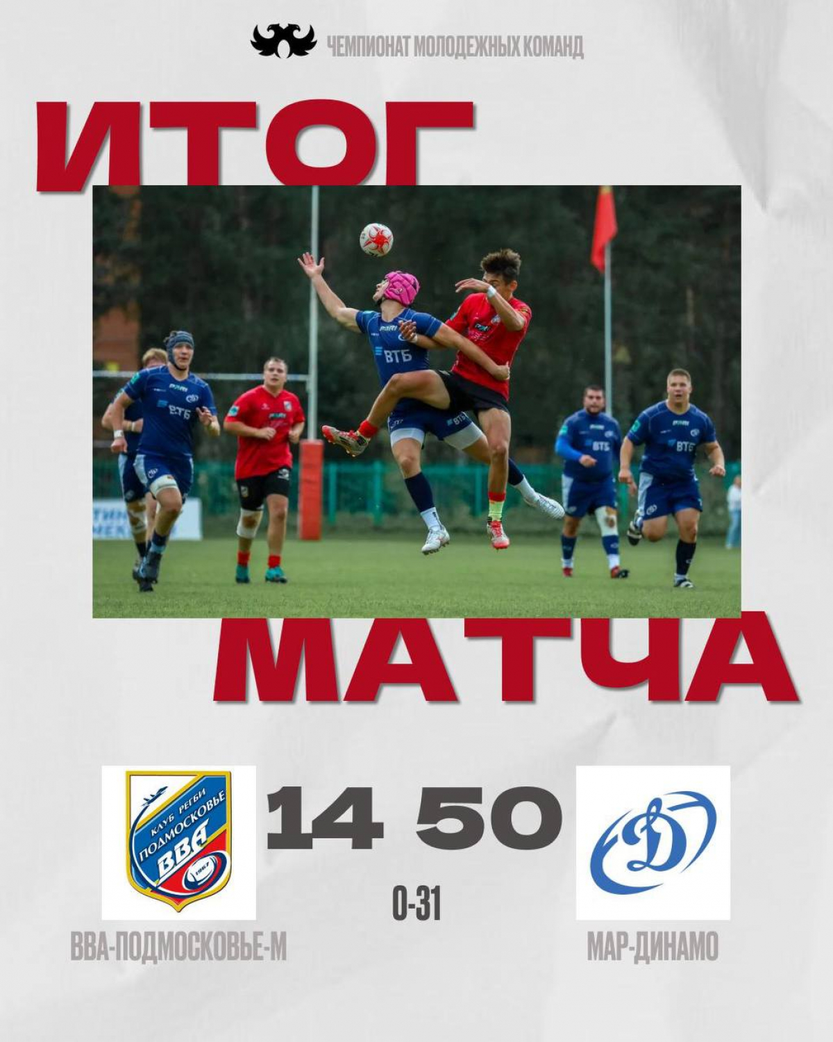 Оставалось всего пара минут до финального свистка, но соперник сумел взять последнее слово, положив мяч в зачётную зону «военлётов» и поставив окончательную точку в матче. Итоговый счёт встречи — 14:50.