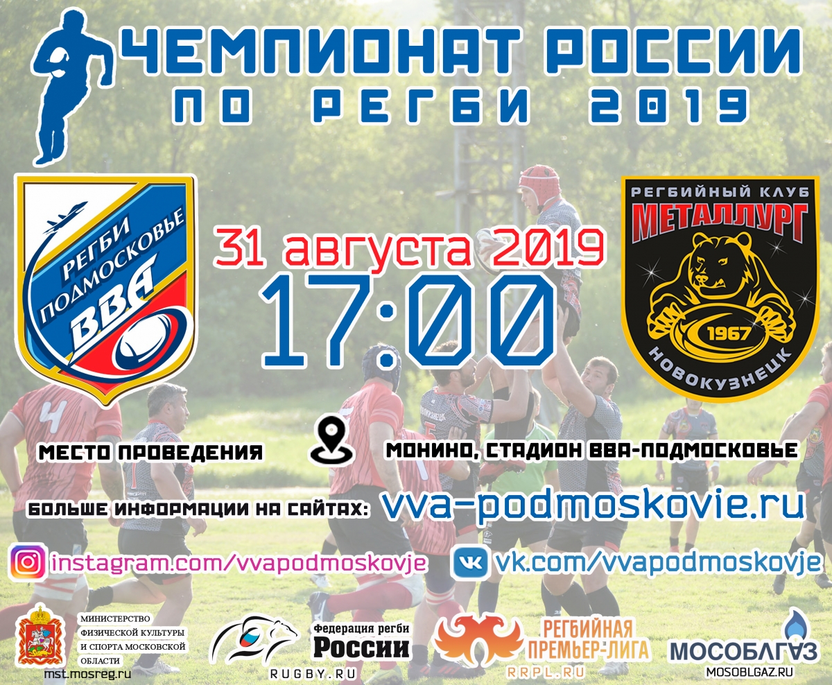 В эту субботу, 31 августа, на стадионе ВВА в Монино встретятся команды «ВВА-Подмосковье» и «Металлург» (г. Новокузнецк).