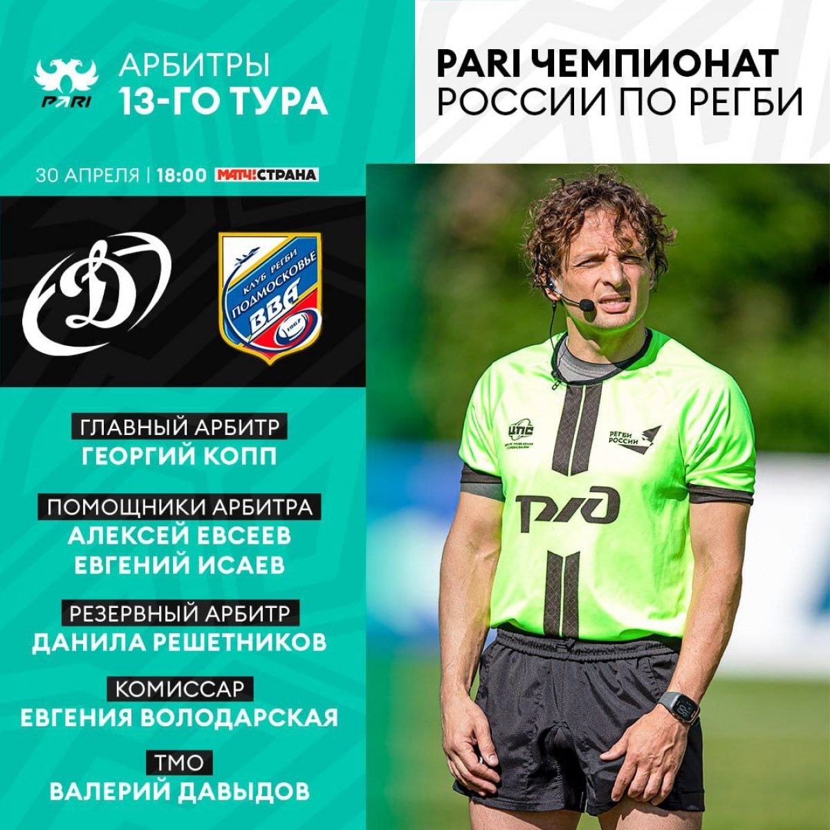 Георгий Копп — главный арбитр матча «Динамо» — «ВВА-Подмосковье»!